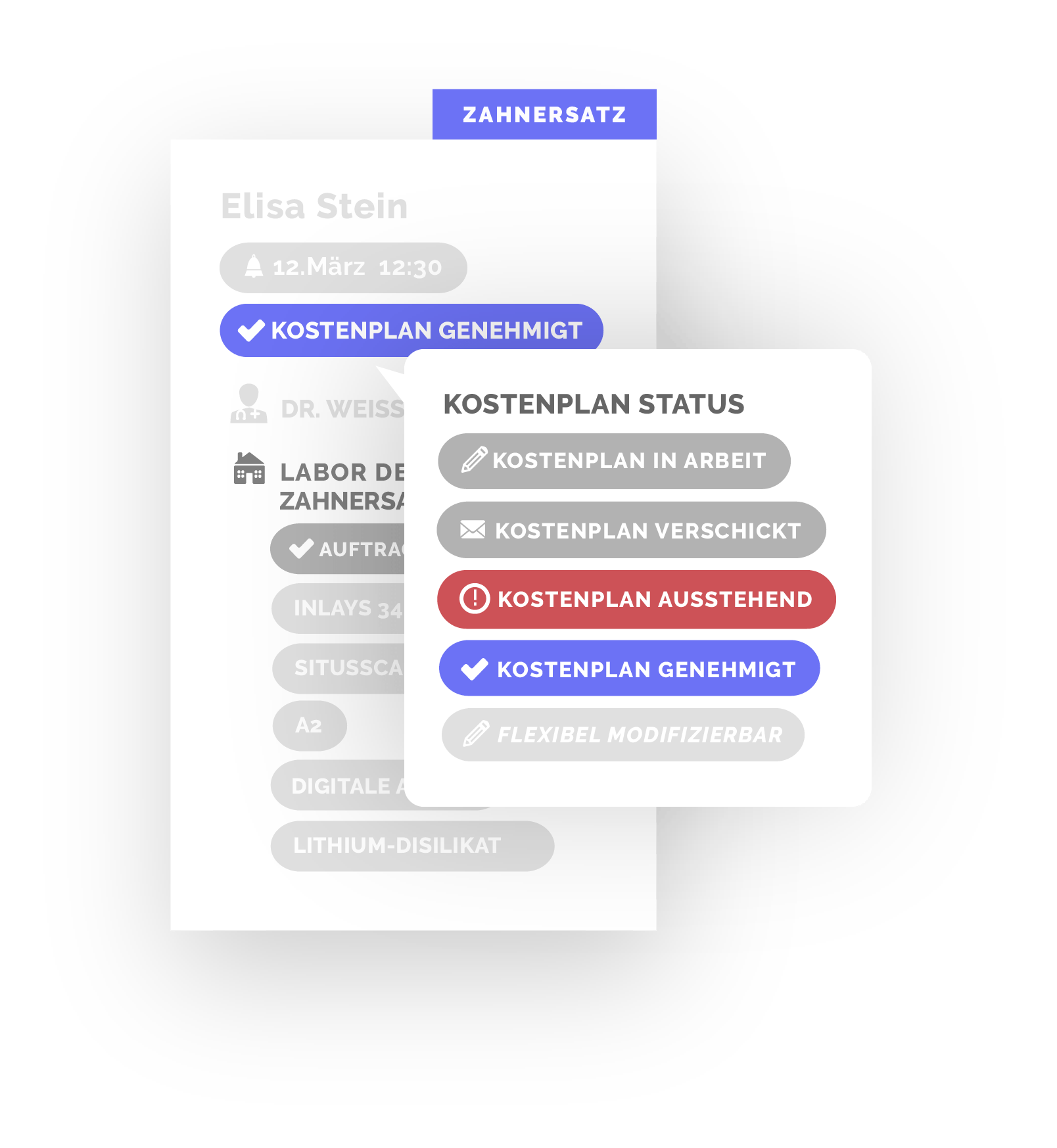 Zahnfarbe, individuelle Bedürfnisse…Wirklich alle relevanten Patienten-Infos an einem Ort.